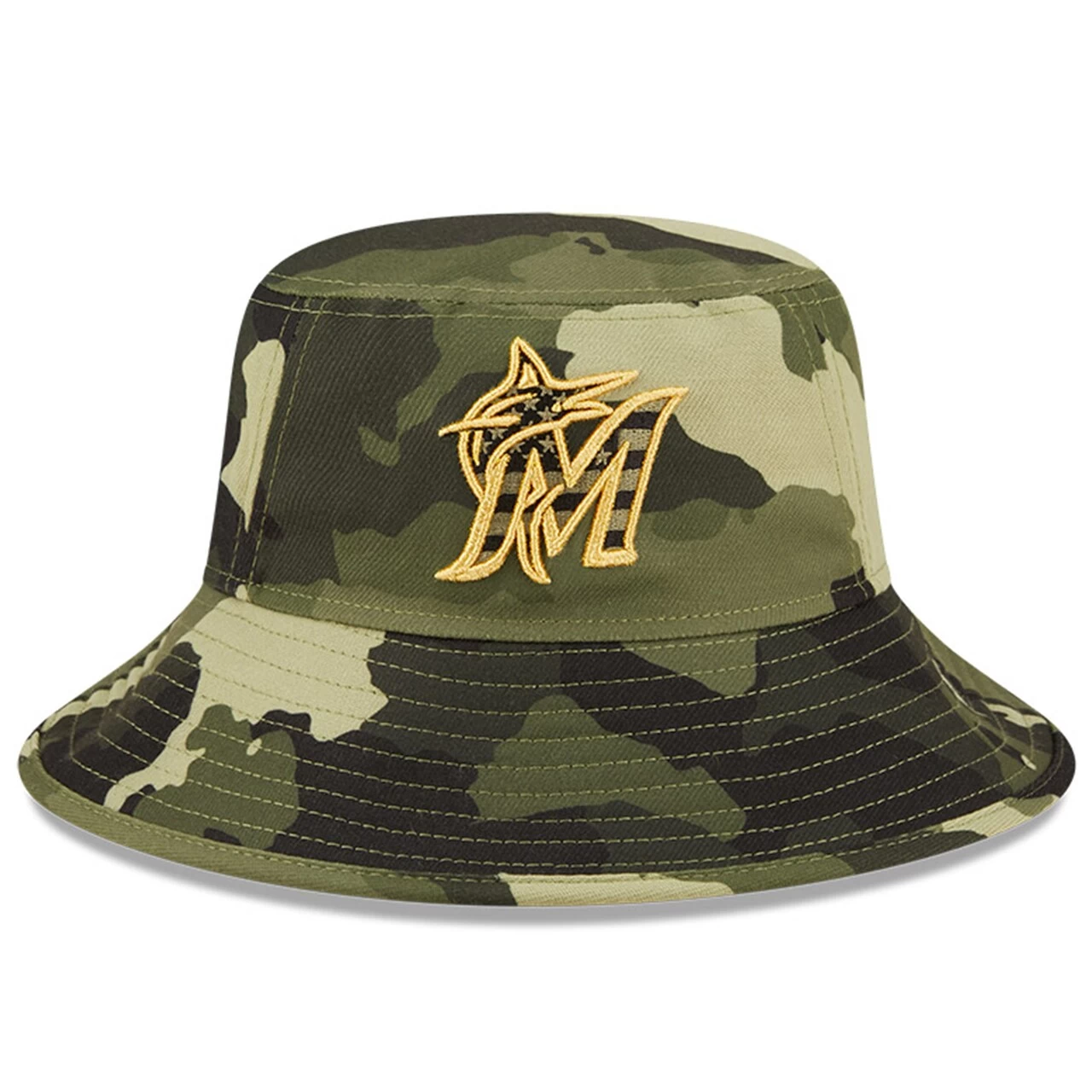 No one’s a bigger Miami Marlins fan than you, and that’ll be clear when you rock this special 2022 Armed Forces Day Bucket Hat from New Era. The spirited camo design and six-star patch on the right side make this a unique addition to your collection and will help you stand out from fellow baseball fans. This special Armed Forces cap will let everyone know your allegiance lies with the Miami Marlins.Major League Baseball is a proud supporter of charitable programs for service members, veterans and military families.