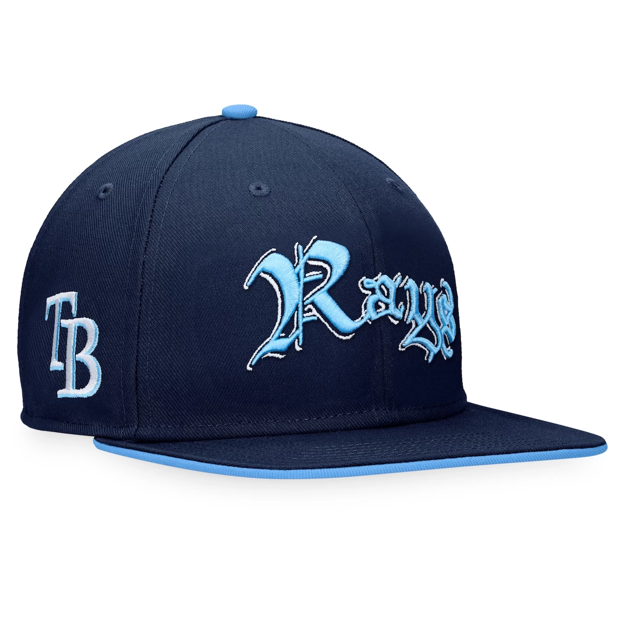 Top off your game day look in style with this Tampa Bay Rays Iconic Old English hat from Fanatics Branded. The raised embroidered old English graphics and contrasting details give this hat a unique look that stands out among other headwear. The snapback closure guarantees a comfortable and secure fit every time.